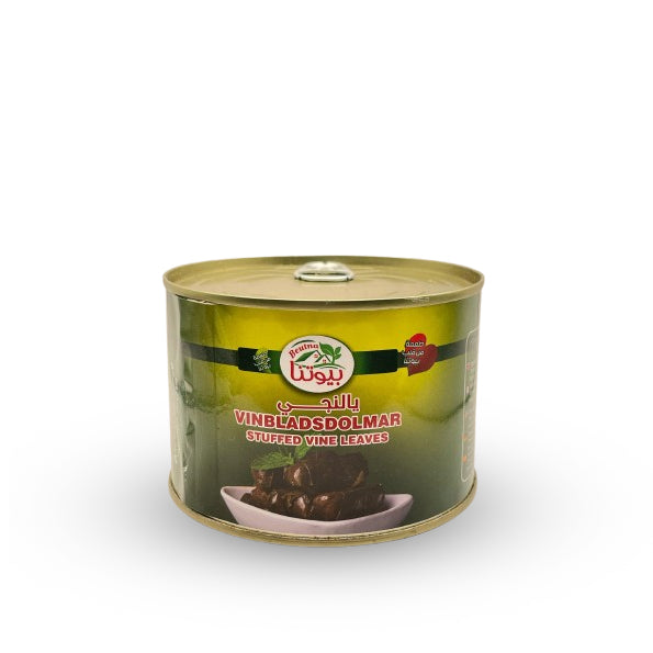 Autentisk Beutna VINBLADSDOLMAR, en traditionell medelhavsdelikatess med möra vinblad som är noggrant fyllda med kryddat ris. Varje förpackning på 400 g har en perfekt balans mellan syrliga och salta toner, perfekt som förrätt eller lättare måltid. Expertmässigt tillagad enligt tidshävdvunna tekniker för exceptionell smak och konsistens.